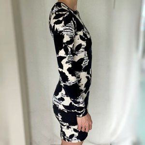 Flattering bodycon dress by Topshop Tall. The sleeves are nice and long and go all the way to my wrists (I have long arms). There is some minor pilling on the fabric that I tried to capture in the last photo, but otherwise this dress is in great condition.