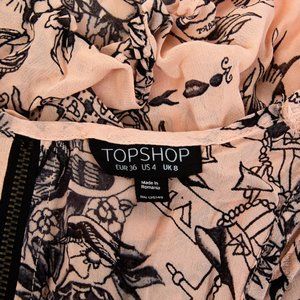 Topshop Semi-Sheer Blouse in soft peach-pink colour and bold Tattoo Flash Art Graphics in black.