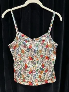 Topshop floral crop tank top with front tie, size 6. Ptp 17.5” T348