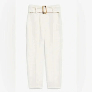 Topshop Trousers Jodi Tapered Leg High Waisted Belted Pants Ivory Size 4 NWT
