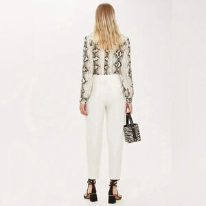 Topshop Trousers Jodi Tapered Leg High Waisted Belted Pants Ivory Size 4 NWT