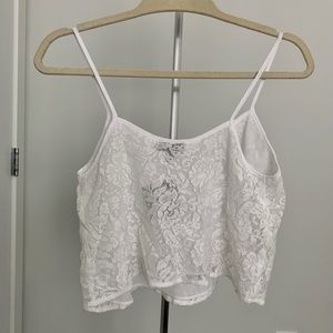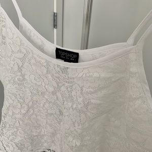 Topshop White Cropped Lace Tank Top - US 4, UK 8
