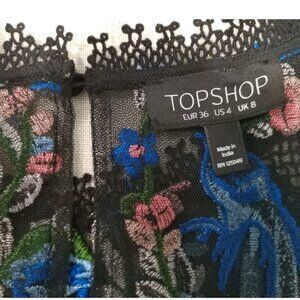 Topshop Women Top Crop Colorful Floral Embroidered Mesh Blouse 3/4 Bell Sleeve 4