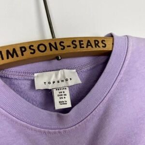 Topshop Womens Size 4 Cropped Crewneck Long Sleeve Sweater Purple Hot Pepper Gra
