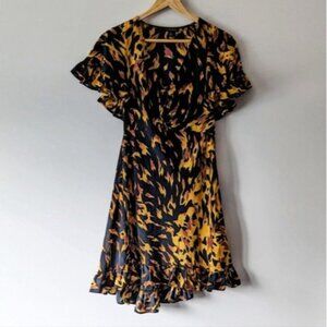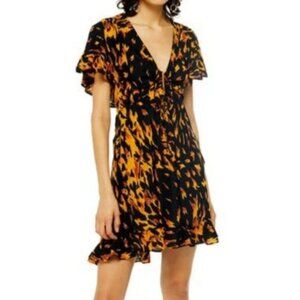 Topshop flame print short sleeved ruffle dress orange and black
