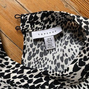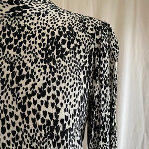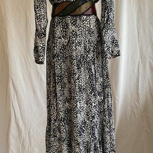 Long sleeve tiered speckle print dress with a high neck. Rayon. Worn twice, in like new condition.