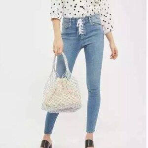 Topshop moto Jamie light Wash blue lace up stretchy skinny jeans size 26