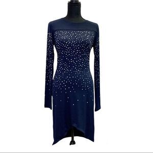 Topshop navy blue long sleeve spandex open back rhinestone embellished dress Sz6