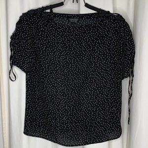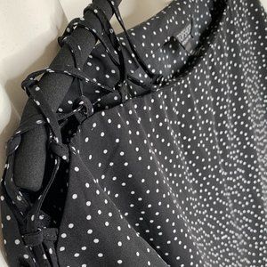 Topshop mini dot lace-up shoulders blouse. I live in a smoke free and pet free environment. If you have any questions about it, let me know. Excellent condition.