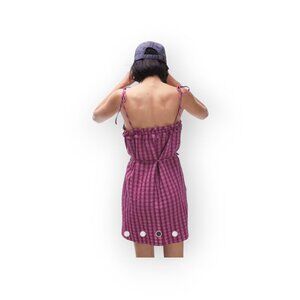 Topshop textured mini chuck on strappy dress in pink purple plaid NWOT size M