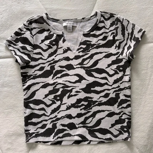 Topshop zebra print t-shirt with V-cut out