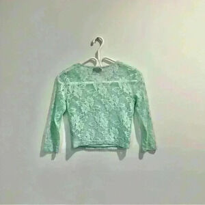 Topshop | womens xsmall mint green lace 3/4 sleeves crop top sheer in the back