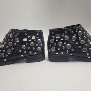 Black leather pointed toe ankle booties from Topshop with silver metal studs. Good used condition.
