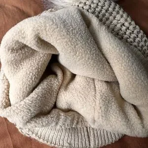Crystal embellished toque with warm fleece lining and fur pompom.