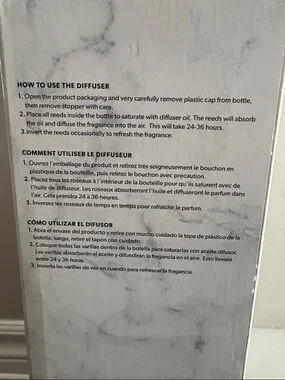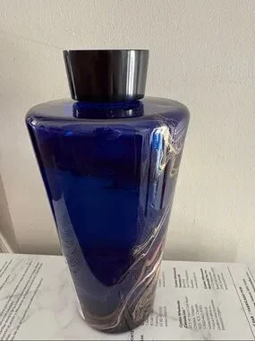 Torc reed diffuser featuring a rich blue and gold marbled glass vessel. Adds a stylish accent and subtle fragrance to any room. Includes black diffuser reeds for easy scent diffusion. Lasts for months.
