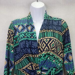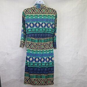 Tori Richard Honolulu Dress Women’s M 3/4 Sleeve Multicolor Blue Ruched Front