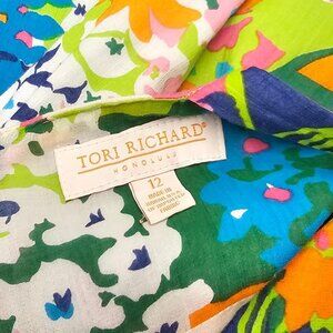 Tori Richard Honolulu Multi Color Floral 100% Cotton Long Dress Size 12 Hawaiian