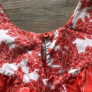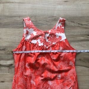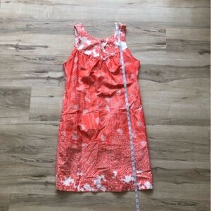 This vibrant orange sundress by Tori Richard is perfect for casual or resort wear. Featuring a sleeveless design with a scoop neckline, it offers a breezy and stylish look. The mini length and eye-catching color make it a standout piece for any sunny day.