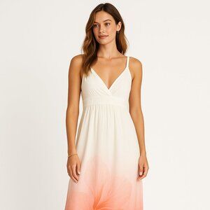 Tori Richard White Coral Ombre Sleeveless Floral Print Maxi Dress Size 8