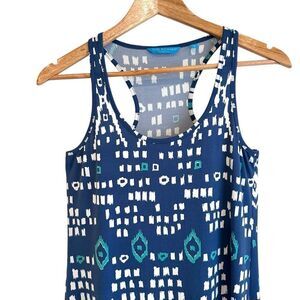Tori Richard Honolulu Tank Maxi Dress Blue White Scoop Neck Sleeveless Size S