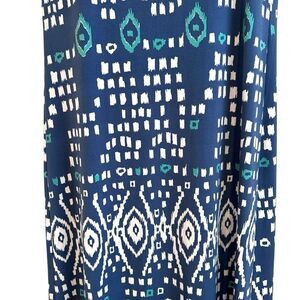 In excellent condition. This Tori Richard Honolulu blue and white patterned maxi dress perfect for vacation and those hot summer days. Its unique design and comfortable fit make it a must-have in your wardrobe. T-back and made from a stretchy fabric and will give you all day comfort. Flat lay measurements: 17" pit to pit, 58" length.