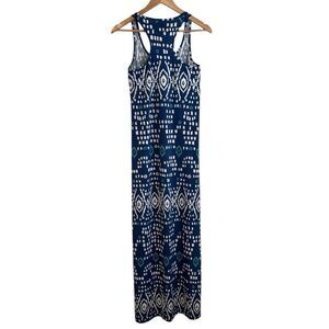 Tori Richard Honolulu Tank Maxi Dress Blue White Scoop Neck Sleeveless Size S