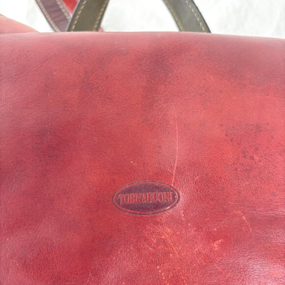 This stunning Tornabuoni leather backpack features a beautiful multi-tone red and brown color scheme with contrasting stitching details. Crafted with premium genuine Italian leather that develops a rich patina with use. Perfect for everyday elegance or weekend adventures!