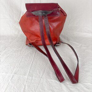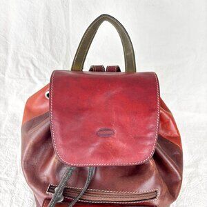 Tornabuoni Italian Leather Backpack Red Brown Multi-Tone Drawstring Travel Bag