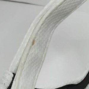 There is a small stain as pictured on the inside by the adjustable strap, as pictured. Otherwise, excellent previously loved condition.