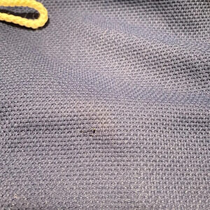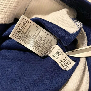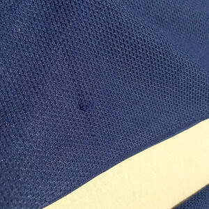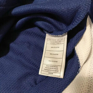 This jersey is very worn has some damage. There are a lot of marks and stains on it. There are pulled threads and some small holes. Please see all photos for exact item.