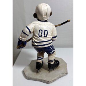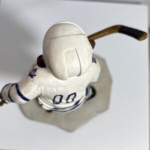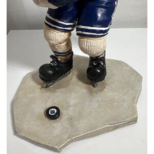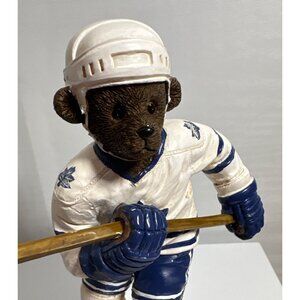 This intricately crafted Toronto Maple Leafs hockey bear figurine is a unique collectible for sports enthusiasts. Featuring the team's iconic colors and mascot, this figurine serves as a lively tribute to the beloved NHL team. Its detailed design makes it an appealing addition to any display or collection.
