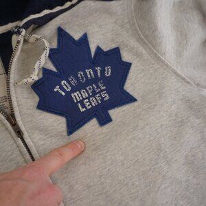 Toronto Maple Leafs Hockey CCM NHL Navy Cream Zip Up Hooded Sweatshirt Large