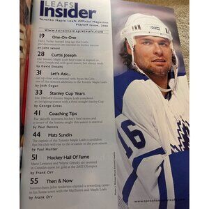 A collectible edition of the Leaf's Insider, featuring Curtis Joseph on the cover. This playoff issue commemorates the Toronto Maple Leafs' 2000/2001 season with detailed articles and insights.