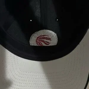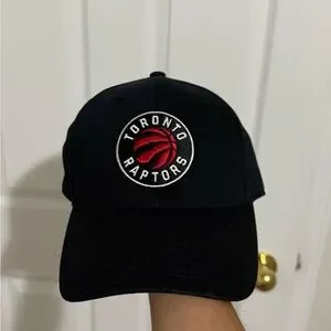 Black cap featuring the Toronto Raptors logo with red and white details.