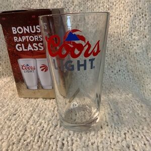 Coots Light promotion of a bonus Raptors beer glass. 6 inches high, 3.5 inches diameter at the top of the glass. New in box but the box is damaged as shown in last two photos.