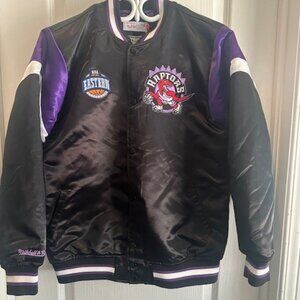 Toronto Raptors Mitchell and Ness Heavyweight Satin Bomber - Large