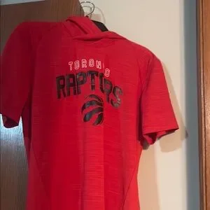 Vibrant red Toronto Raptors t-shirt with bold logo on the back.