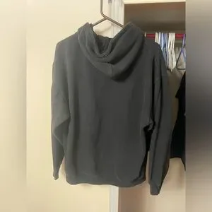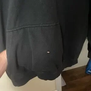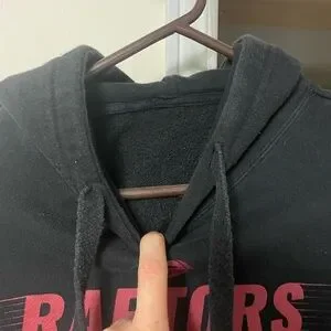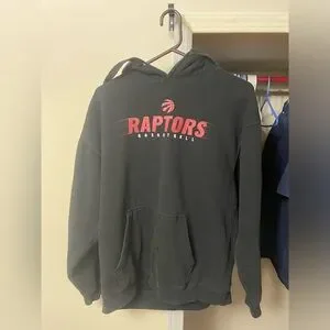 Toronto Raptors sweater missing tag but I believe is a size large. Logo is beginning to crack but is hardly noticeable at the moment. Small hole in the front pocket all shown in the pictures above.