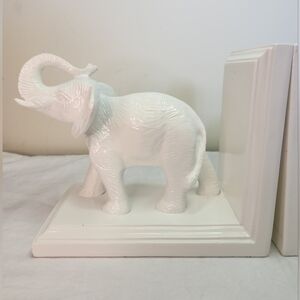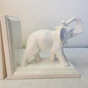 Glossy polished White Carved resin Elephant Bookends, by Torre & Tagus Collection.