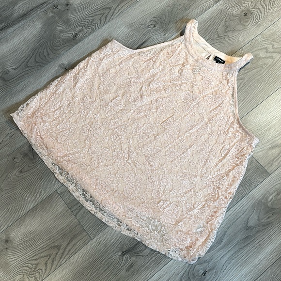 Elegant lace tank top. Sleeveless design. Perfect for layering. EUC smoke and pet free
