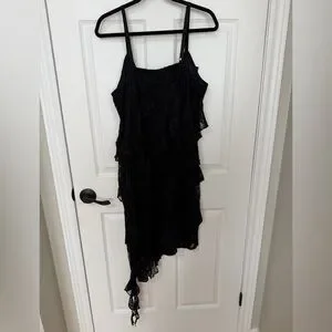 Chic black dress with asymmetrical ruffles. Perfect for stylish outings.