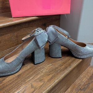 Torrid BETSEY JOHNSON SILVER BOW BACK HEEL size 10 (WW - WIDE WIDTH) NIB new in box, trace wear to sole from trying on and walking.
