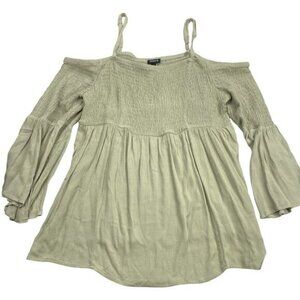 Torrid Babydoll Crinkle Smocked Top In Slate Green Womens Plus Size 2Xen