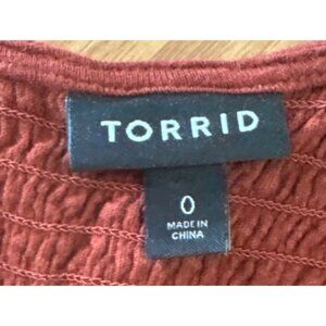 Torrid Babydoll Top Smocked Flutter Sleeve Tiered Rust Red Size O Large