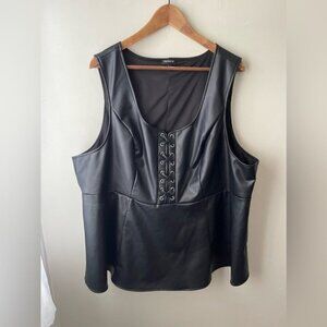 Torrid Black Faux Leather Lace-Up Peplum Top size 4X vegan leather sleeveless