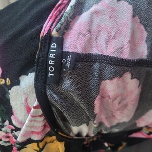 Torrid Black Faux Wrap Short Sleeve Dress With Floral Print Sz.0
