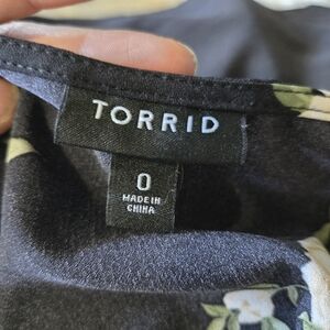 This stylish top showcases a black base with cream floral patterns, featuring a wrap design and a notched collar for a chic appearance. The blouse's flowy fabric and floral style make it perfect for both casual and formal settings.