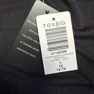 Torrid Black Metallic Liquid Shimmer Shine Crew Neck Short Sleeve Top Size 1XL