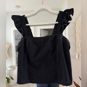 Black cotton crop top with adjustable ruffle straps