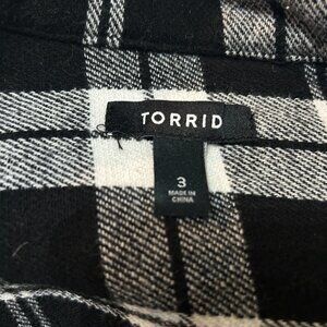 Torrid plaid shacket, plus size Torrid jacket, black white plaid coat, Torrid size 3 outerwear, Torrid shirt jacket, Torrid cotton plaid shacket, Torrid heavier weight coat, plus size plaid jacket, Torrid casual outerwear, Torrid fall layering